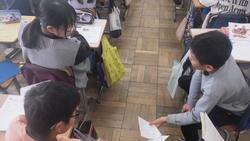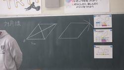4年生「四角形」の学習です。昨日と同じような写真になってしまいましたが・・・台形や平行四辺形などの四角形の対角線の交わり方を調べました。「それぞれの対角線が中心で交わる四角形は?」という問いの意味が分からないという声があちこちから。問題を解くには、当たり前ですが、まずは問題の意味を正しく理解しないといけません。私が「こういうことだよ。」と伝えると「だったら○○ですね。」と正解にたどり着くことができました!