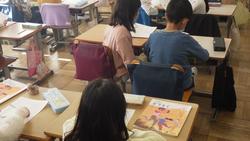 4年生書写「書き初め」の練習の様子です。書き初め大会で使用する長い半紙を使用して練習しました。一つひとつの字は上手に書けても、長い半紙に書くとバランス(字の配置)が難しいため、作品としての見栄えが良くない場合があります。おうちでも冬休み中に練習してきましょうね。