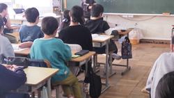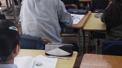 2年生道徳の授業の様子です。2年生の道徳は、同じ時間に担任が学級交換して授業を行うシステムを取り入れています。例えば、1組の先生が2組で、2組の先生が3組で、3組の先生が4組で、4組の先生が1組で授業を行うという感じです。こうすることで、いろいろな先生から授業を受けることができます。