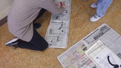 4年生書き初めた大会の様子です。体育館が現在、空調工事のため使えないので図工室で行いました。4年生の課題は「初もうで」です。学校での練習に加え、おうちで練習してきた成果を発揮して、上手に書くことができました!