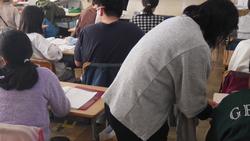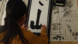 3年生書き初め大会の様子です。3年生の課題は「ゆき山」です。たった3文字ですが、長い半紙いっぱいに書きあげていて、素晴らしい!の一言です。練習の成果を発揮することができましたね。