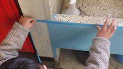 2年生算数「長さ」の学習の様子です。教室や廊下にあるいろいろな物の長さを測り取る活動でした。実際に手を動かして操作したり調べたりすることを「数学的活動」と言いますが、知識だけでなく、実際に体験することで学び(理解)も深まります。