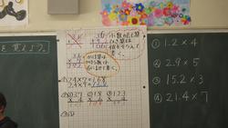 4年生算数「小数のかけ算」の学習の様子です。黒板に問題(21.4×7)が書いてあったので、私が近くの子に「14.98でしょ。」と聞くと「先生、小数点の位置が違ってます。149.8ですよ。」と諭されました・・・たしかに!教師の間違いに気づく子供はすばらしいです(笑)