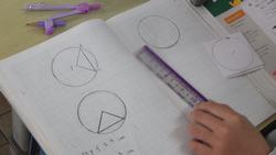 3年生算数「三角形」の学習の様子です。円の性質を利用して、二等辺三角形や正三角形を作図しました。それぞれの三角形の性質と円の性質を関連づけて考えることが重要です。あとは・・・定規やコンパスを正確に使える技能がミソです。