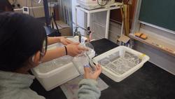 4年生理科「水のゆくえ」の学習です。水は熱しなくても、空気中に水蒸気となって出て行きますが、このことを蒸発と呼びます。ラップで蓋をしたコップと蓋をしていないコップを使って、その様子を確かめました。