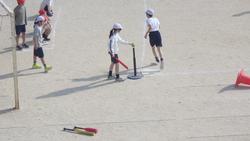 5年生体育「ティボール」の様子です。ティボールとは、投手が投げたボールを打つのではなく、バッティングティーと呼ばれる代の上に置いたボールを打って、塁を進む運動(ゲーム)です。ボールを怖がる子も親しめるため、皆ゲームを楽しんでいました。
