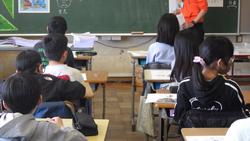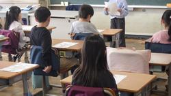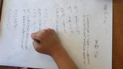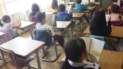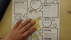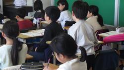 自己紹介カードをのぞくと・・・得意なことにバイオリンと書いている子がいました。尋ねてみると、小さい頃から習っているようで、すごいなぁと思いました。自己紹介カードをもとに、みんなの前で発表をしていました。聞いているみんなもしっかりと目を見ていました。立派です。あるクラスでは、詩の視写をしていました。手本をそのまま書き写すのは、簡単そうに見えて集中力が問われます。丁寧に書き写していて、これもまた立派100点です!