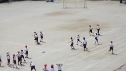 4年生は校庭でリレーを行っていました。子供達が大好きなリレー、走るのが苦手な子供もリレーとなると力が湧くものです。もちろん、それは声援があってこそ。「○○がんばれー」の声が校庭に響いていました。