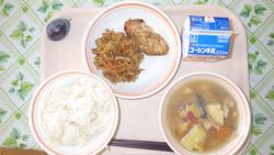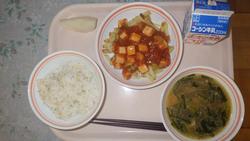 4日(木)ごはん とうふのチリソース もやしのごまみそスープ なし ぎゅうにゅう