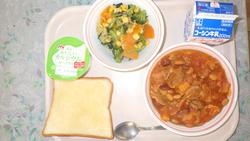9日(火)はちみつれもんトースト ポークビーンズ コーンサラダ ヨーグルト ぎゅうにゅう