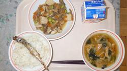 10日(水)ごはん ししゃものごまやき にくどうふ みそしる ぎゅうにゅう