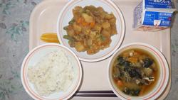 3日(水)チキンカレーライス だいずのカリカリサラダ がりがりくん ぎゅうにゅう