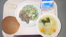 24日(水)はいがまるパン ガーリックチキンのキノコソース あおのりポテト ABCスープ なし ぎゅうにゅう