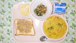 30日(火)ツナコーントースト ひじきサラダ かぼちゃシチュー れいとうパイン ぎゅうにゅう