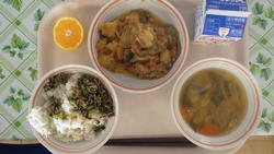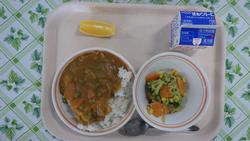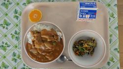 1日(土)チキンカレーライス、コーンサラダ、ネーブルオレンジ、ぎゅうにゅう