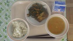 5日(水)ごはん、さばのカレーやき、くきワカメのきんぴら、じゃがいものみそしる、ぎゅうにゅう