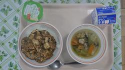 6日(木)マーボーどん、きゃべつのちゅうかスープ、ヨーグルト、ぎゅうにゅう
