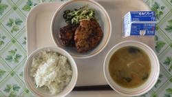 17日(月)ごはん、とうふのまさごあげ、のりずあえ、ごまみそけんちんじる、ぎゅうにゅう