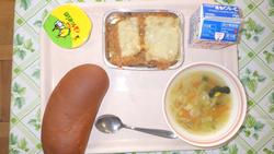 18日(火)こくとうパン、ポテトミートグラタン、コンソメスープ、はちみつレモンゼリー、ぎゅうにゅう