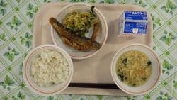 14日(金)ごはん、さんまのうめに、おひたし、けんちんじる、ぎゅうにゅう