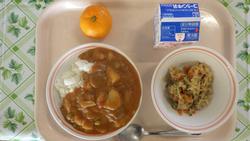1月13日 ハヤシライス きりぼしだいこんサラダ きっかみかん ぎゅうにゅう