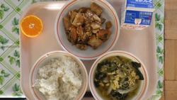 1月15日 ごはん ジャジャンどうふ たまごスープ きっかみかん ぎゅうにゅう