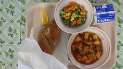 1月30日【旅する給食 長崎県】ちゃんぽんめん じゃがちゃん カレーもやしサラダ ヨーグルト ぎゅうにゅう