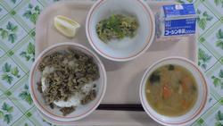 1月26日【旅する給食 千葉県】ごはん しろみざかなのおろしに ごまあえ さつまじる ぎゅうにゅう