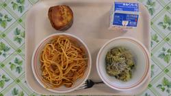 1月22日 ナポリタン ジャコとしおこんぶのサラダ てづくりアップルマフィン ぎゅうにゅう