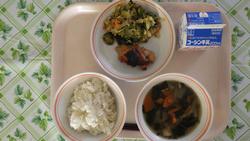 1月21日 やながわどん とうにゅういりみそしる からしあえ こくさんおれんじ ぎゅうにゅう