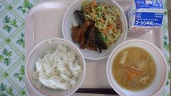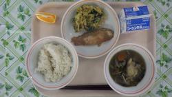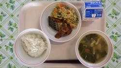 2日(月) ごはん さばのみそに なめたけあえ のっぺいじる ぎゅうにゅう