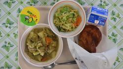 18日(水)【ガーナきゅうしょく】ジョロフライス ガーナフラッグサラダ オクロスープ てづくりチョコマフィン ぎゅうにゅう
