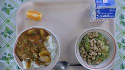 27日(金)やきねぎカレーライス だいずのカリカリサラダ こくさんオレンジ ぎゅうにゅう