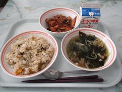 | 1日 | 月 | たかなチャーハン チキンチキンごぼう わかめスープ ぎゅうにゅう |