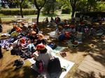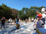 自然博物館のグループ活動では、リーダーが中心となって、みんなで協力して多くの発見・気付きをし、公共ルールを守って活動できました。見学が終わると、みんな楽しみにしているお弁当・おやつの時間です。持ってきたお弁当を嬉しそうに食べている様子が印象的でした。昼食後は、巨大トランポリンで遊びました。短い時間でしたが、みんな大はしゃぎ!気持ちよさそうに跳ね回っていました。