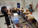 グリコピアの工場見学は、2年生にとって丁度良い学びになっていました。パピコの製造過程を映像と実物で確認したり、エアシャワーを体験したりすると、みんなが「おぉ~!!」と声を出しながら、とても良い表情をしていました。パピコを製造しているタンク内の疑似体験では、チョココーヒーの香りのする煙が出ていて、みんなでその煙を一生懸命食べようとしている様子がとてもかわいかったです!パピコを凍らせているー5℃からー15℃の冷凍庫内を歩く体験も、なかなかすることのできない貴重な体験でした。工場内は撮影禁止になっていて、お見せできないのが残念です。