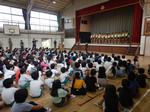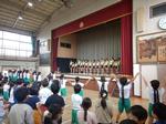 大会に出場する選手の紹介と応援が行われました。選手は、入場から選手紹介、退場と、とても立派な姿でした。部長挨拶も素晴らしかったです。暑い日が続き、練習時間を十分に確保できない状況の1か月間でしたが、本番では、悔いのない競技ができるよう、全校でエールを送りました。