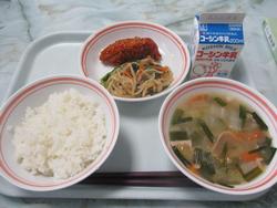 | 10日 | 月 | むぎいりごはん こざかなふりかけ こうやどうふのあげに キャベツのみそしる ぎゅうにゅう |