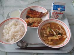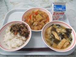 | 14日 | 金 | ごはん いわしのかばやき かぶのごまずあえ さつまじる てづくりなしゼリー ぎゅうにゅう 【千産千消献立】 |