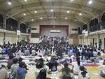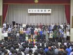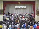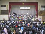 遠くからでも口の発音が分かるほど大きく口を開けて歌い、体育館中にその歌声を響かせました。一致団結した姿は見事でした。