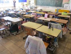 まずは、地震から身を守る訓練です。教室で、地震や火災時の行動について学習をし、地震発生時の動きを確認しました。