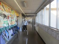 続いて火災から身を守る訓練です。「給食室から出火」の想定ですので、東側の非常階段が主な避難ルートになります。
