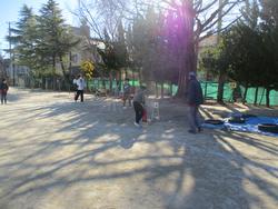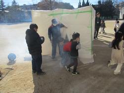 消防署の方々の準備指導のもと、1年生と3年生が煙道訓練を行いました。