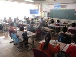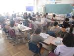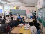 講話後、前回は1年生の教室に足を運んでいただきましたが、今回は社会科で警察の仕事を学習している3年生の教室に足を運んでいただきました。