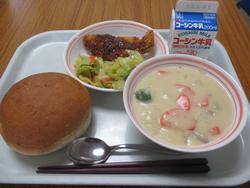 | 16日 | 月 | バンズパン ホキフライ レモンドレッシングサラダ クリームシチュー ぎゅうにゅう |