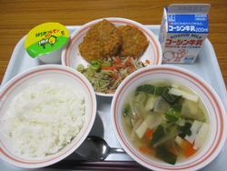 | 25日 | 水 | ごはん かりかりがんも しおこんぶあえ すましじる はちみつレモンゼリー ぎゅうにゅう |