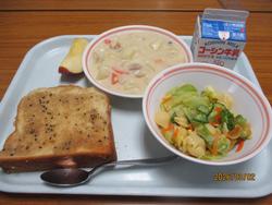 | 2日 | 月 | セサミトースト マカロニサラダ クリームシチュー りんご ぎゅうにゅう |