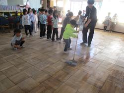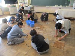 特に教室は、掃き掃除、濡れぶき掃除、ワックスがけとみんなで協力して行いました。