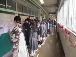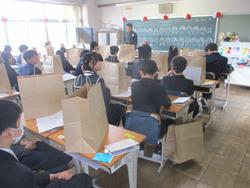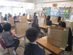卒業生は、登校後、朝のホームルームです。欠席がなく、全員で卒業式にのぞみます。