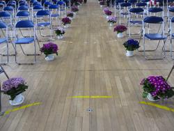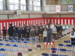 5年生は、先に会場入り。卒業生のために、歌や呼びかけの復習です。声出しをし、本番にそなえます。